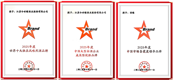 除品牌价值认证外,今世缘酒业在本届华樽杯中还荣获多项殊荣,体现了公司在行业内的全面实力:获评“中国大型白酒企业成长型优胜品牌”,印证了企业在规模与成长性上的双重优势;国缘品牌荣获“中国市场喜爱度领导品牌”,展现了强大的消费者基础与市场口碑;企业同时获授“世界十大独具风味烈酒品牌”,标志着公司产品风味品质获得国际级认可。这一系列荣誉从不同维度勾勒出今世缘酒业作为行业领先企业的综合实力,既有规模优势,又具成长潜力;既得市场认可,又获专业肯定。